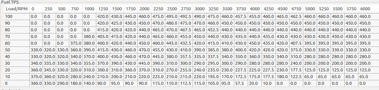 The values in the fuel table are usually dimensionless, although I believe the 162F fuel tables are in microseconds of injector time at standard pressure and temperature. But I haven't verified this yet.